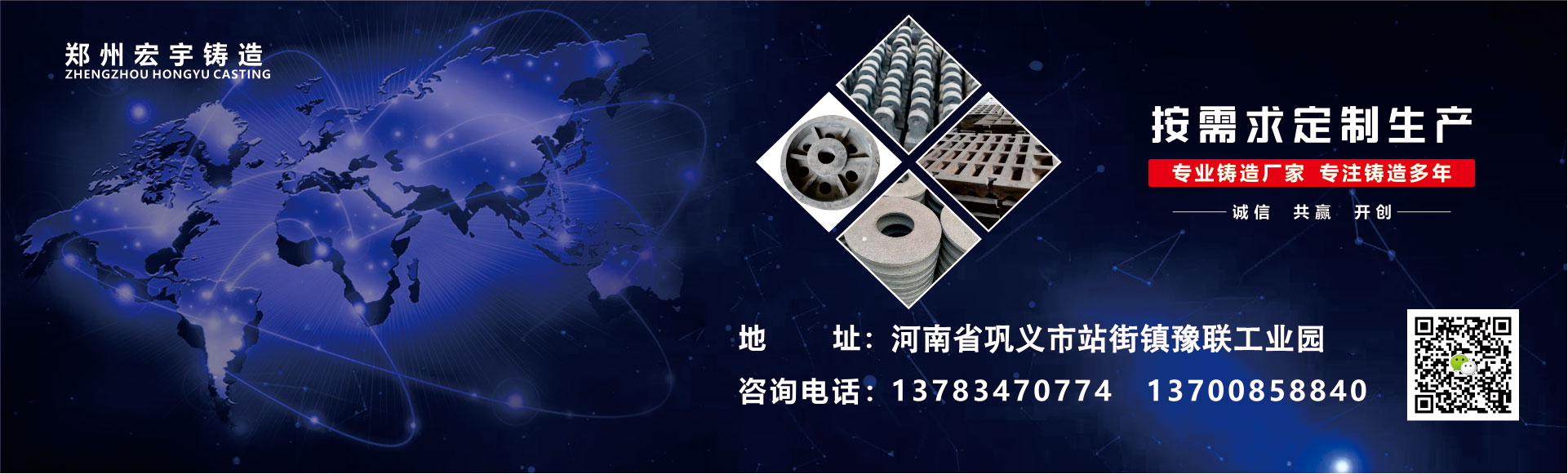 鄭州宏宇鑄造位于河南省鄭州鞏義市是鑄造件廠家,主要生產(chǎn)生鐵機(jī)械配件、耐磨襯板、耐磨錘頭、合金耐磨錘頭、制砂機(jī)錘頭、鑄鋼件、高鉻合金鑄件、球墨鑄鐵件、消失模工藝鑄件、砂型工藝鑄件等!來樣即可加工。 我們技術(shù)力量雄厚、設(shè)備齊全,目前有高級(jí)技師數(shù)名,技術(shù)人員數(shù)十名,能滿足客戶的不同需求,來圖來樣均可生產(chǎn),而且為了確保產(chǎn)品質(zhì)量進(jìn)一步得到完善和提高, 確保供貨及時(shí)達(dá)到客戶的滿意,我們采用優(yōu)質(zhì)原材料及先進(jìn)的制造工藝!